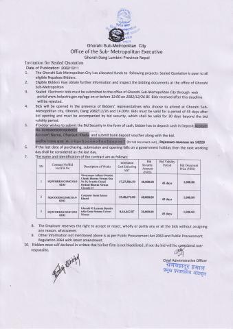 » Invitation for Sealed Quotation ( Date of Publication 2082.12.11, Tharu Sambat 2649 )