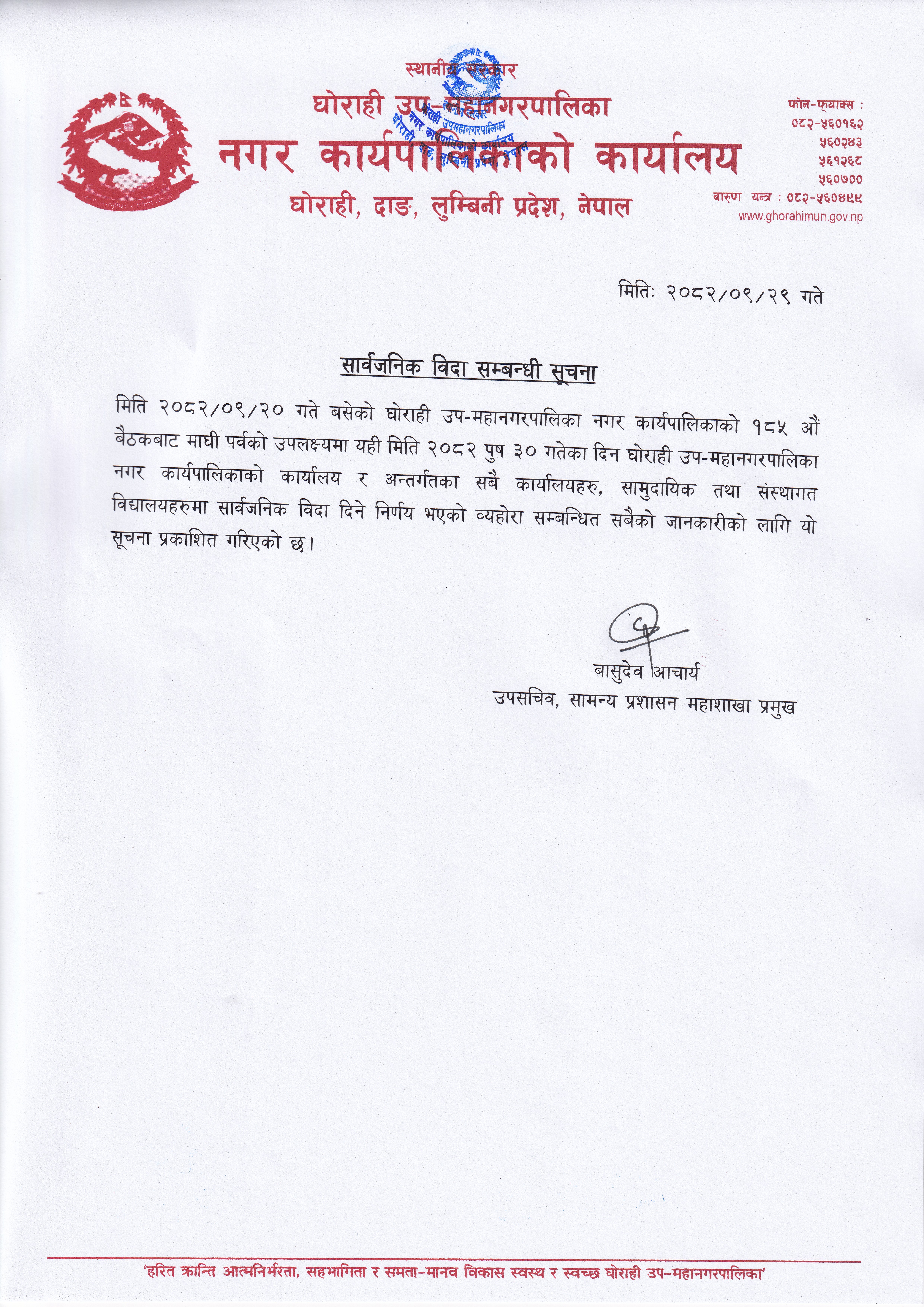 सार्वजनिक विदा सम्बन्धी सूचना ( मिति २०८२/०९/२९ )