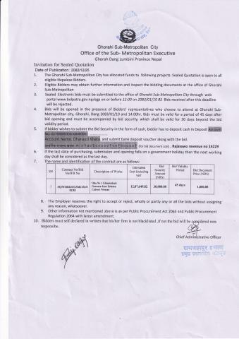 Invitation for Bids ( Date of Publication 2082.12.25, Tharu Sambat 2649 )