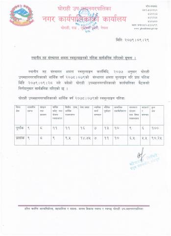 घोराही उपमहानगरपालिकाको आर्थिक वर्ष २०७८/०७९को संस्थागत क्षमता स्वमूल्यांकनको अन्तिम नतिजा सार्वजनिक गरिएको सम्बन्धमा (मिति २०७९/०९/२९)