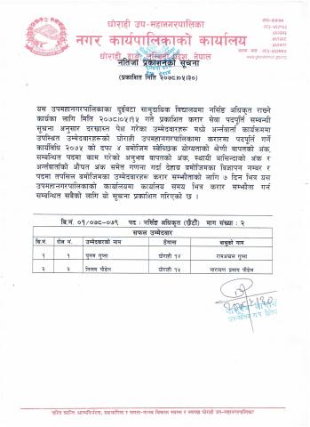 नर्सिङ अधिकृत पदको नतिजा सम्बन्धी सूचना (२०७८/०५/३०)