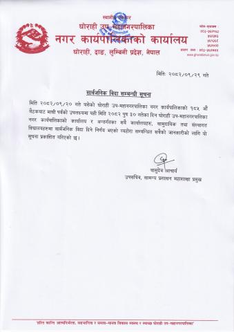 सार्वजनिक विदा सम्बन्धी सूचना ( मिति २०८२/०९/२९ )
