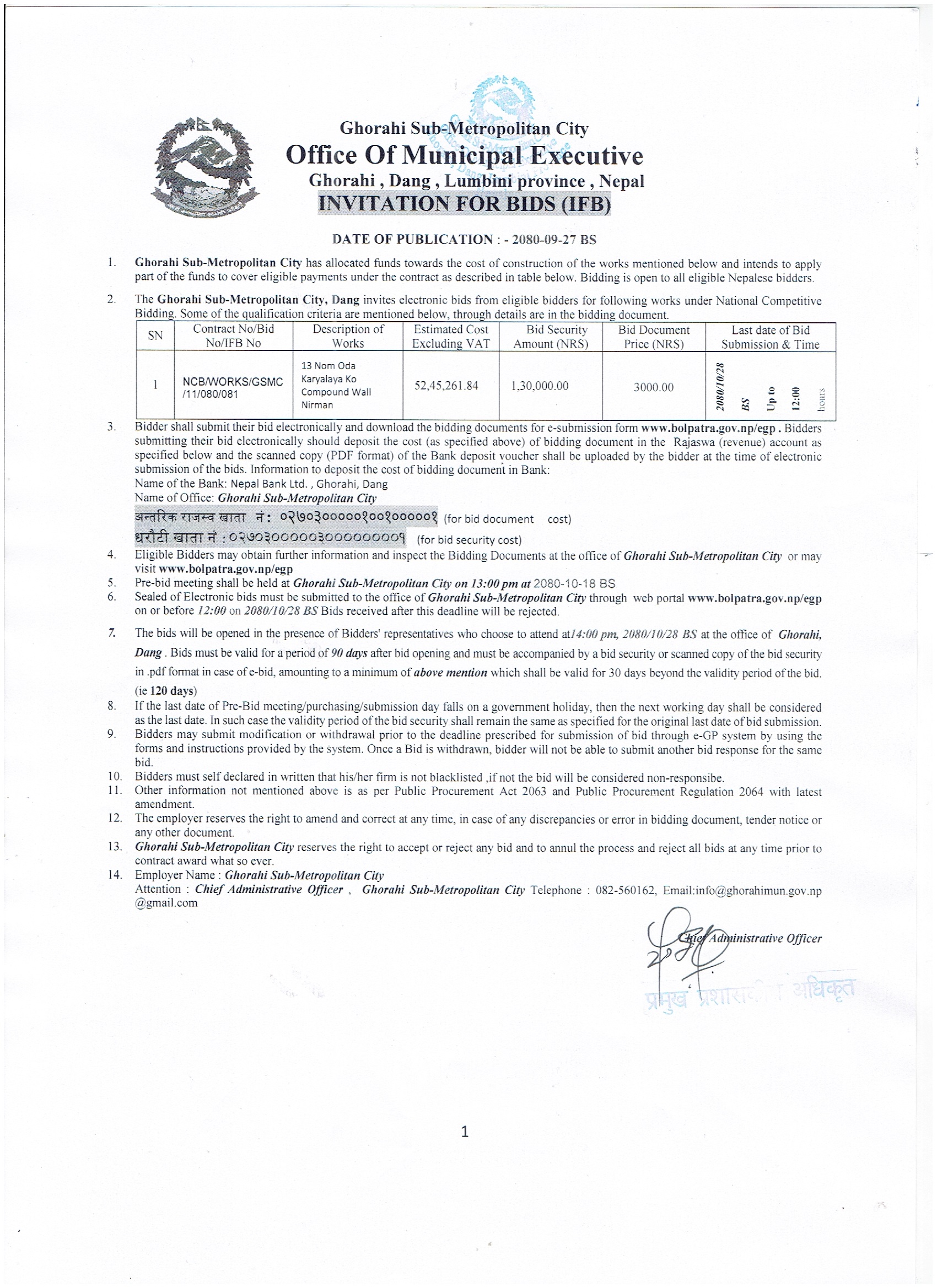 Invitation for Bids (Date of publication 2080.09.27 B.S.)